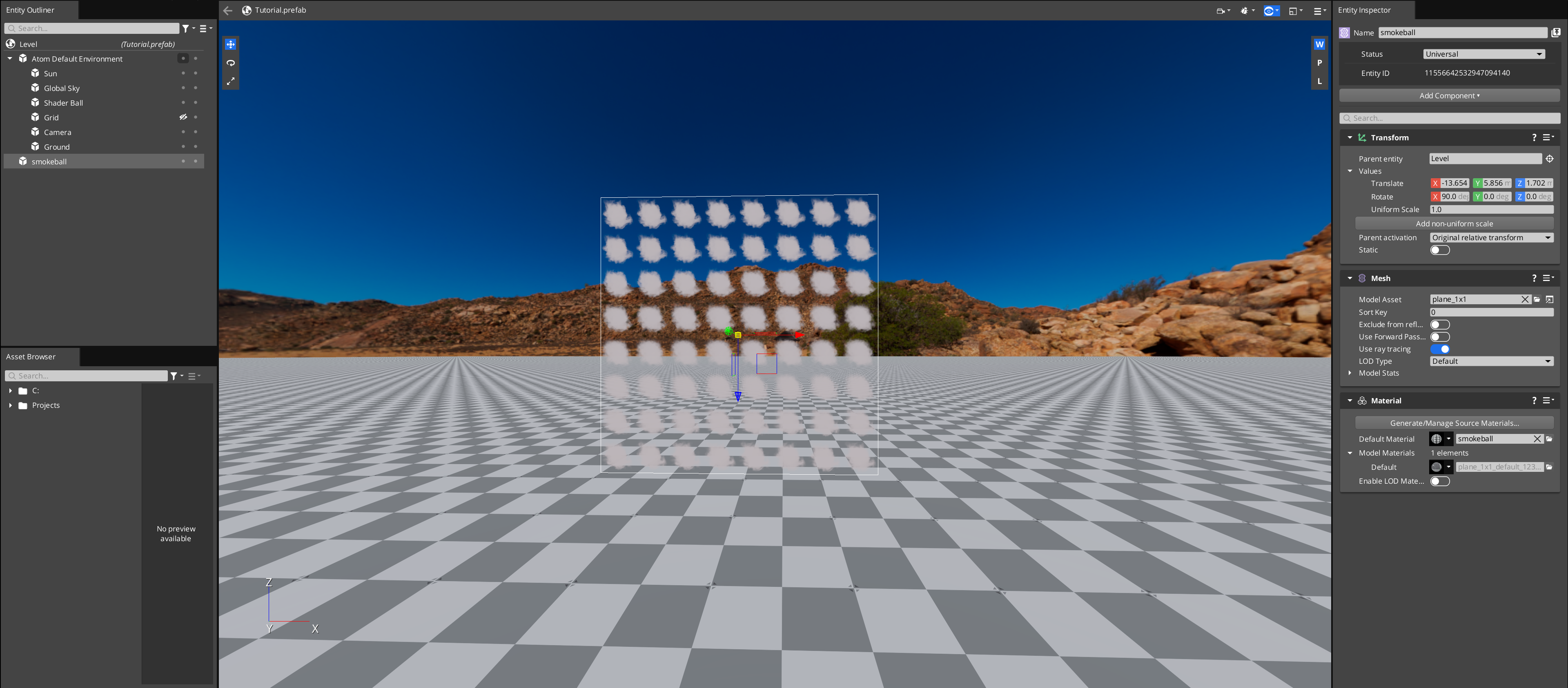 o3de/Gems/Atom/Tools/MaterialEditor/Assets/MaterialEditor/ViewportModels/Plane_1x1.fbx) and the material you just created for the material.