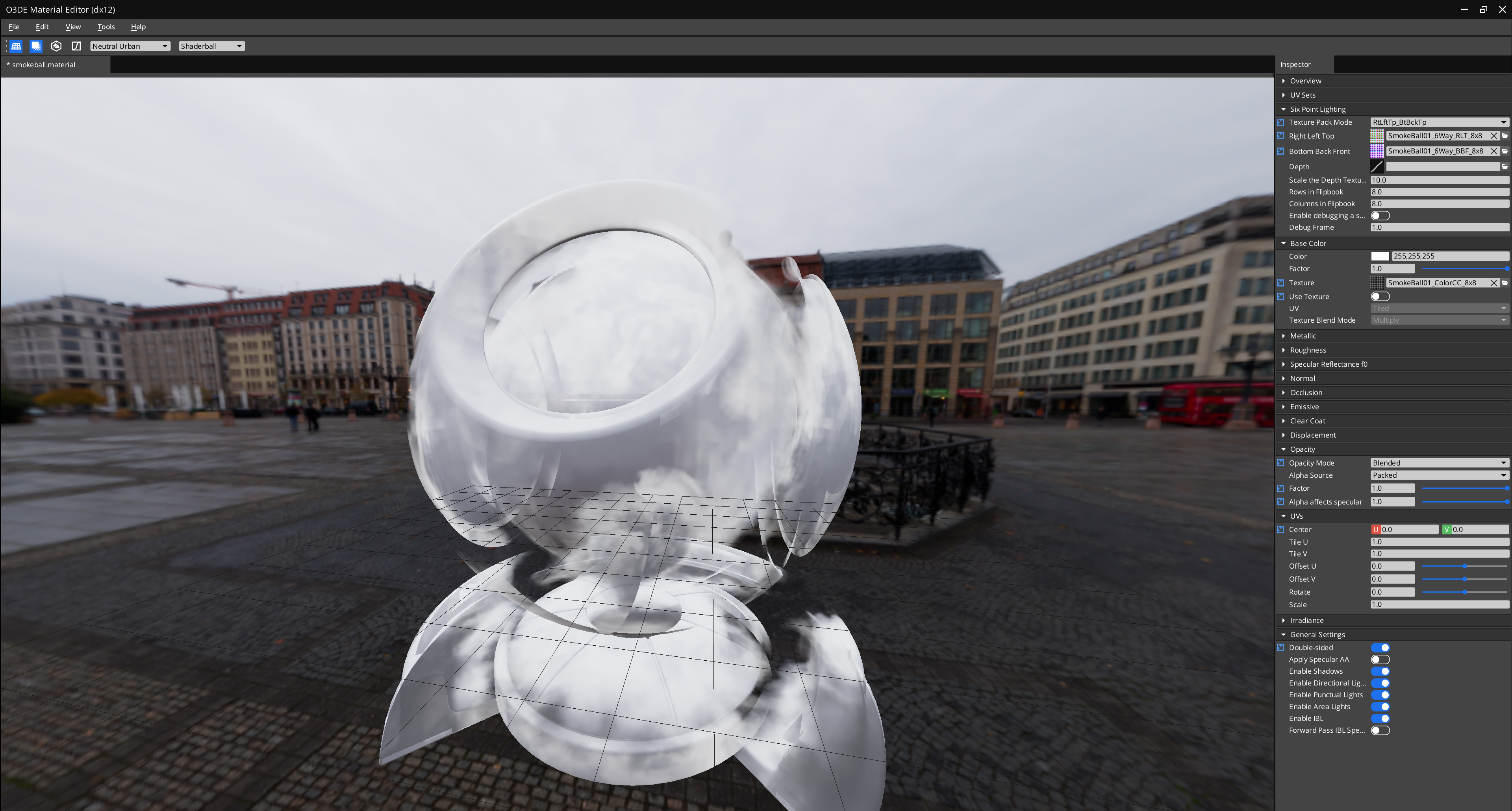 float2 GetUvForCurrentFrame(float2 baseUv) { // Fixed frequency of 30hz // Get the current frame float frame = (float)(((double)SceneSrg::m_time / (33.3333)) * 1000.0) % (MaterialSrg::m_columnCount * MaterialSrg::m_rowCount); if(o_enableDebugFrame) { // The frame input by the material is 1-indexed, so subtract 1 here to make it 0-indexed frame = MaterialSrg::m_debugFrame - 1.0f; } // Get the row/column of the frame float frameColumn = floor(frame % MaterialSrg::m_columnCount); float frameRow = floor(frame / MaterialSrg::m_columnCount) % MaterialSrg::m_rowCount; float2 invColumnRowCounts = float2(1.0f, 1.0f) / float2(MaterialSrg::m_columnCount, MaterialSrg::m_rowCount); float2 sixPointUv = (baseUv + float2(frameColumn, frameRow)) * invColumnRowCounts; return sixPointUv; }Note:The condition,if(o_enableDebugFrame), occurs if you enabled debugging for a specific frame, which can be set via the Material Editor. If enabled, this function uses the specified frame instead of the current frame. This functionality can help ensure that lighting is correctly applied in a specific frame.Open