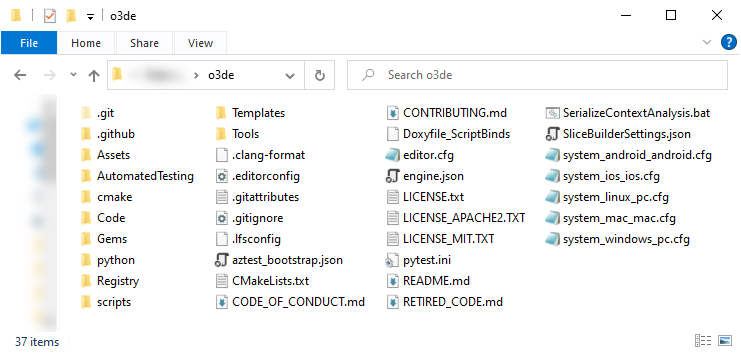 The O3DE engine directory contains O3DE’s core engine, various tools including O3DE Editor, and the Gems and templates that are included with the engine. The directory name depends on how you install O3DE, but here are some common variations: